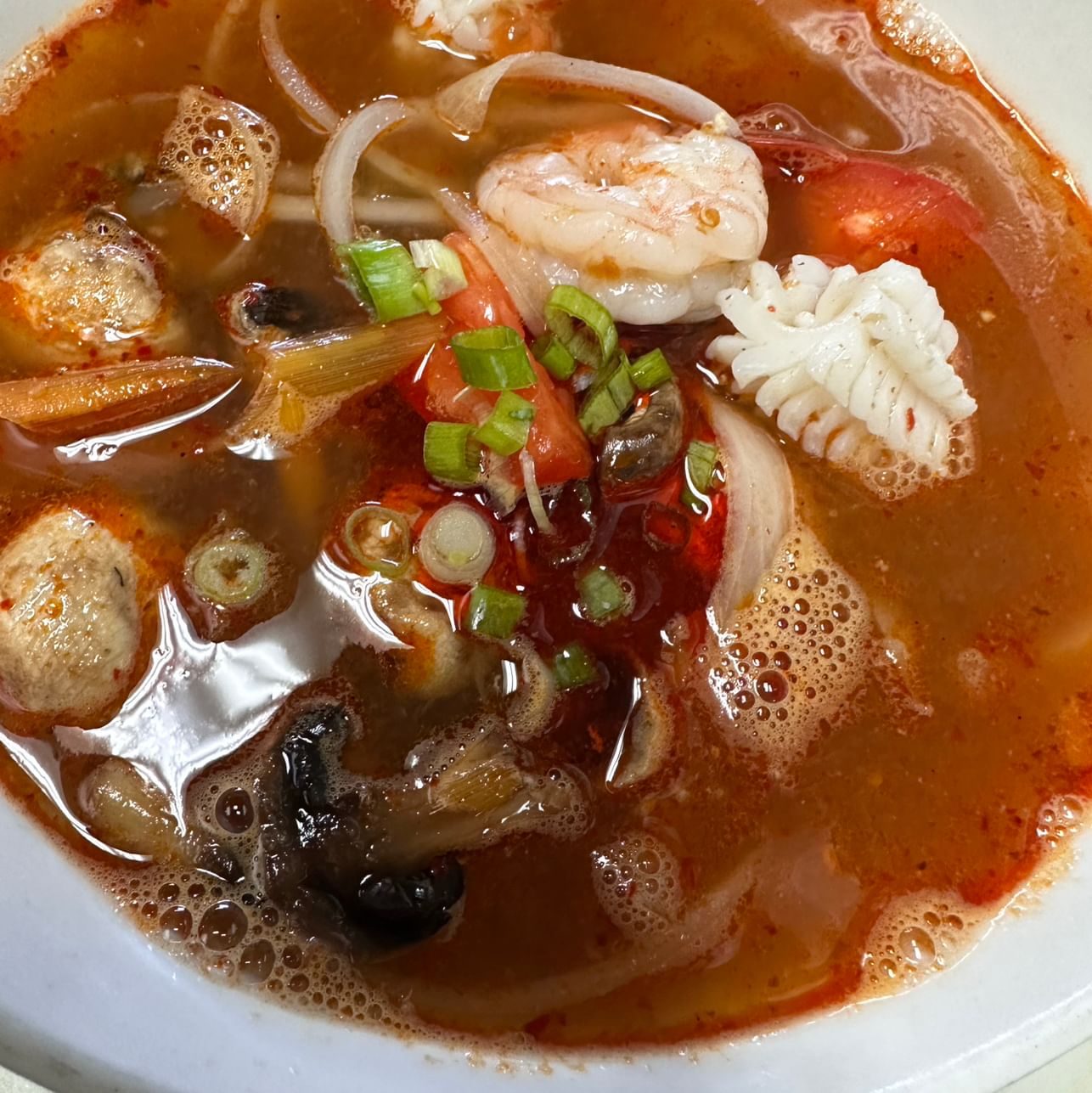 Coconut soup with lemongrass, mushrooms, onions, lime juice