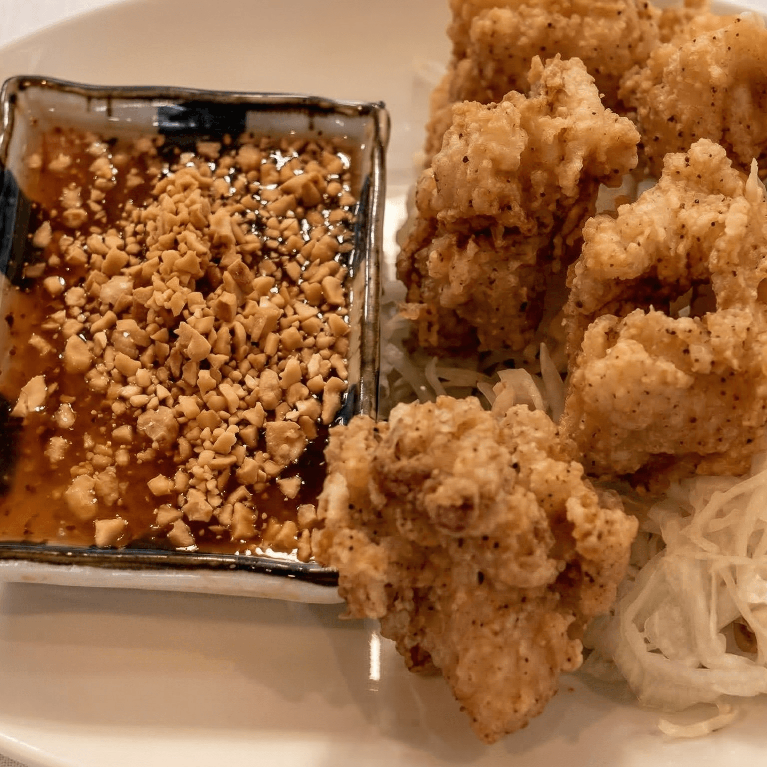 Fried organic tofu served with sweet and sour sauce