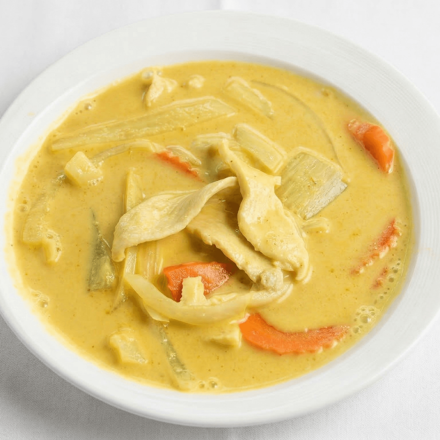 Mild thai yellow curry with coconut milk, potatoes, and onions