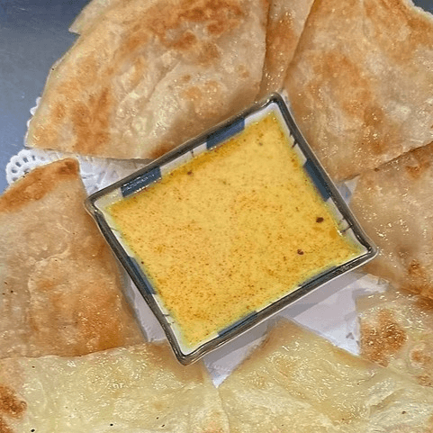 A famous southern thai-styled flatbread served with yellow curry sauce