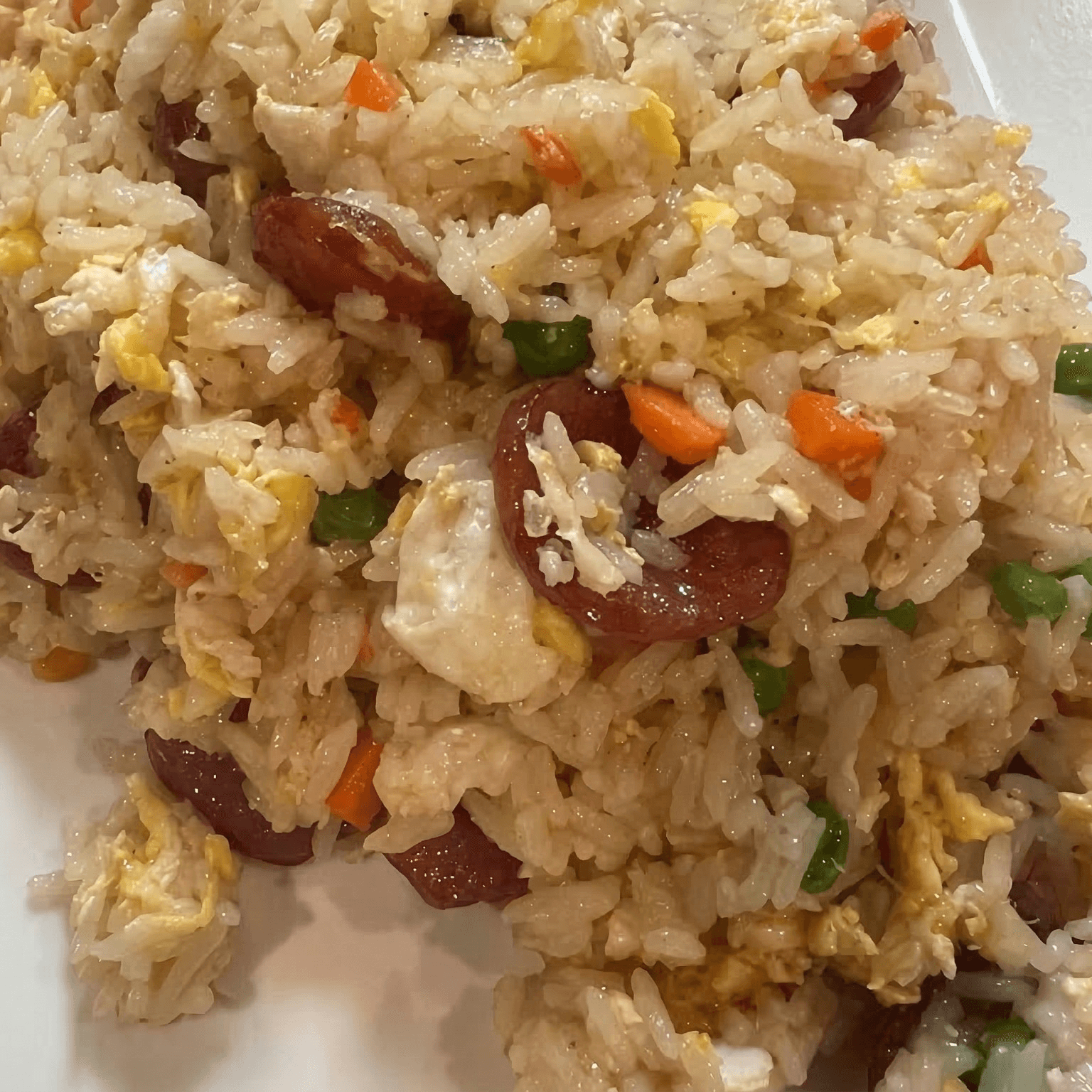 Sautéed fried rice with house special sauce, onions, carrots, green peas, egg and sweet pork sausage