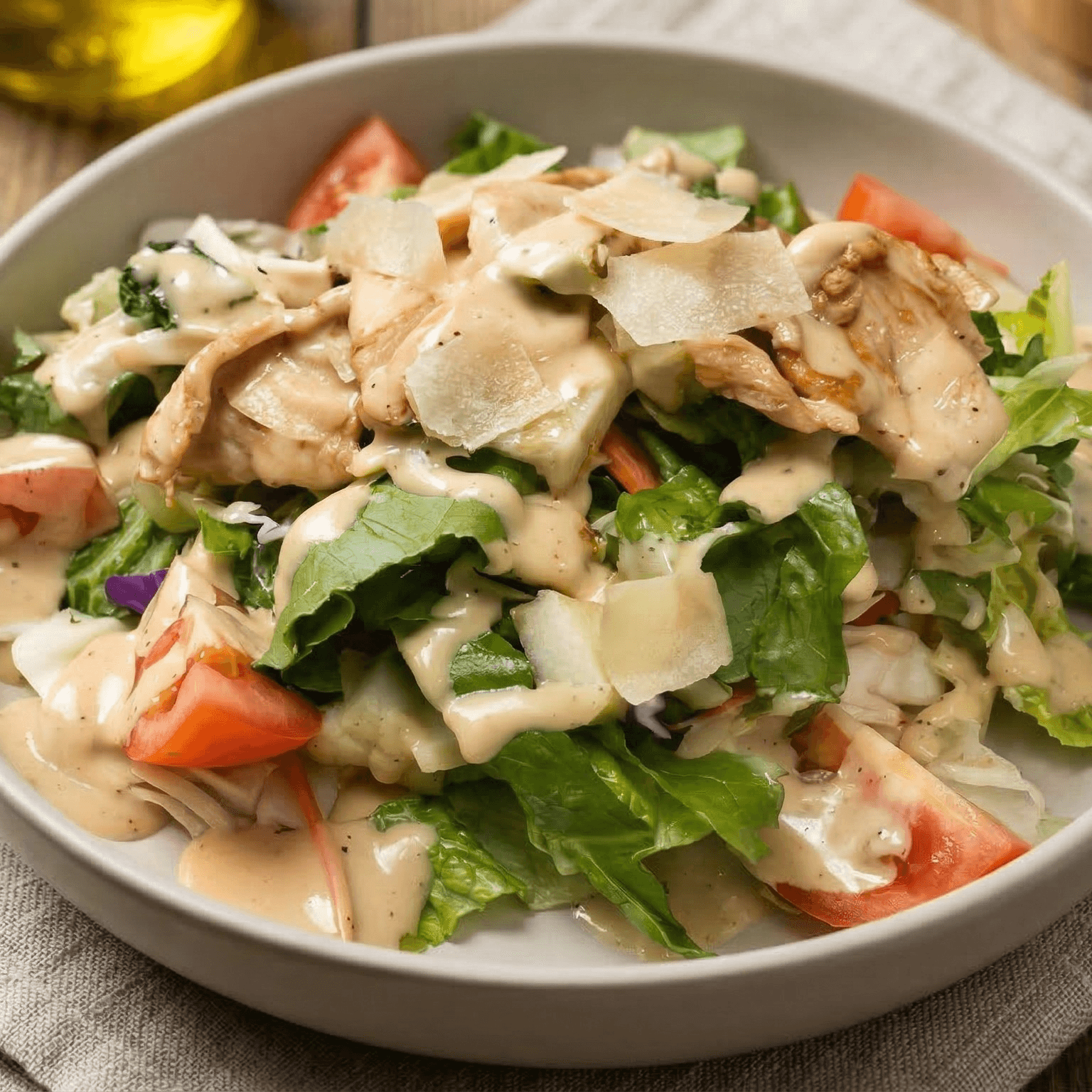 Fresh ice berg lettuce, carrots, cucumber, fresh apple, avocado with sweet chicken and house special creamy sauce on